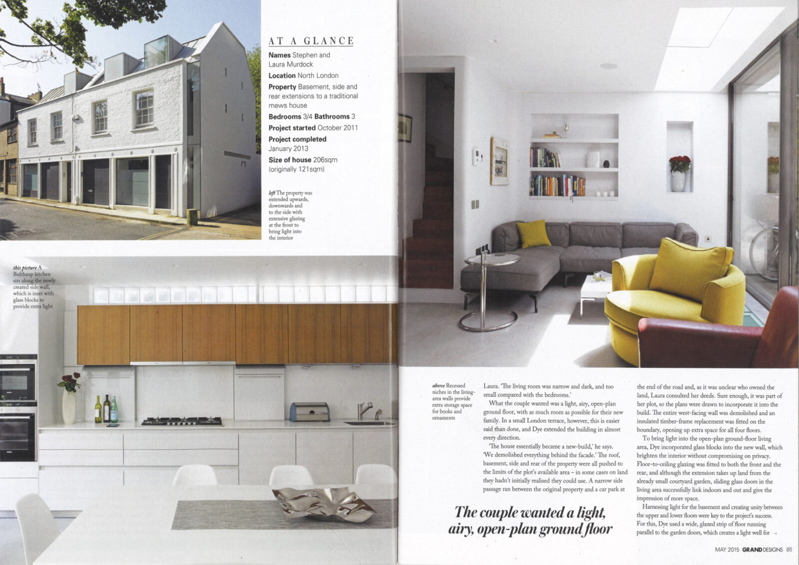 Retaining the front wall, we rebuilt behind, expanding onto a slither of client-owned land to make a new end to the terrace. This added critical space to each floor and a new basement completed a 60% uplift.