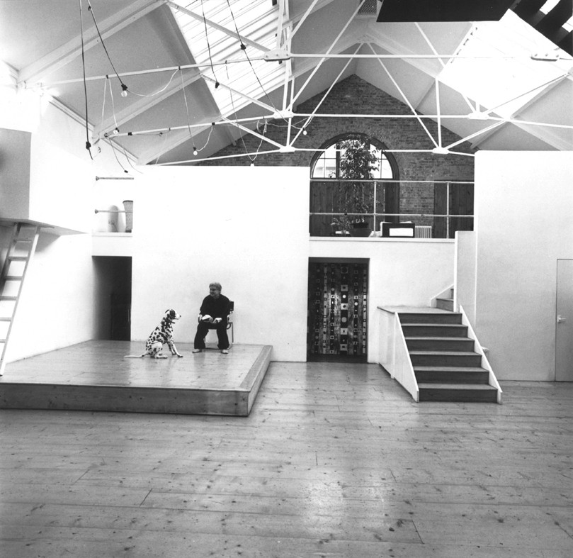The brief also called for a ‘white space’ for living and theatre, with a strong sense of the outside world even during a performance – at a time when our other theatre clients still wanted a ‘black-box’ environment. We inserted a raised gallery at the rear as a transition level and living space with small kitchen and actor/guest/office rooms beneath; we re-used the old fire escape stair rising over the centre and stage between the trusses to access a top-level private suite, including bathroom and terrace. The brick house has been developed next door as a home for the client’s artist son.