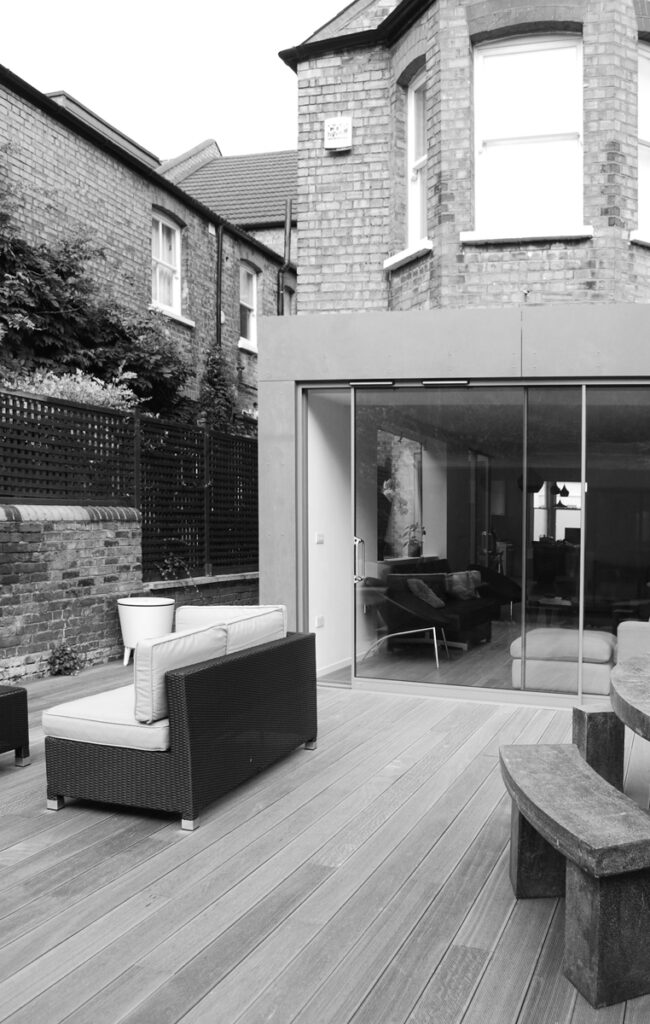 This Victorian end-of-terrace property had a poor ground floor arrangement whose pokey interiors didn’t suit our client’s family needs. Our proposals involved opening up this floor so that the main house, garden and outhouse became one continuous living space. Our client was delighted with the light that the new glazed openings on the side and rear walls brought in, and with the new-found space created by rationalising the layout.