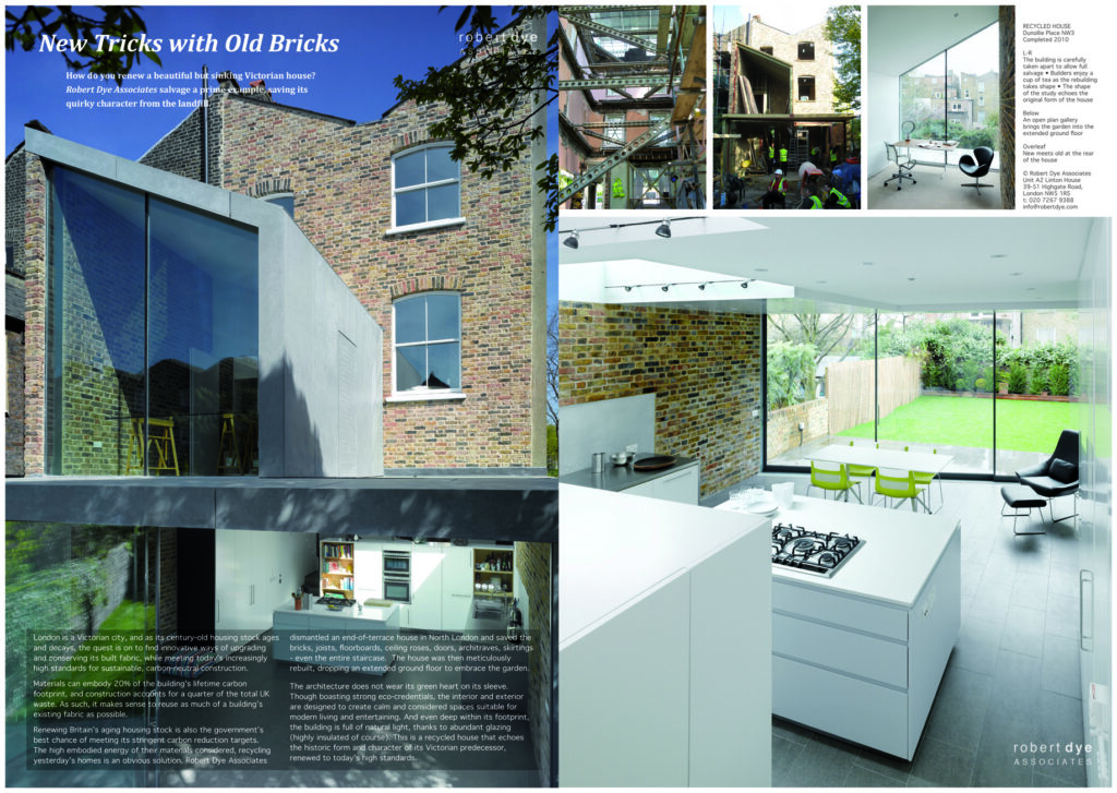 Recycled House was shortlisted for the 2011 R.I.B.A. Awards.