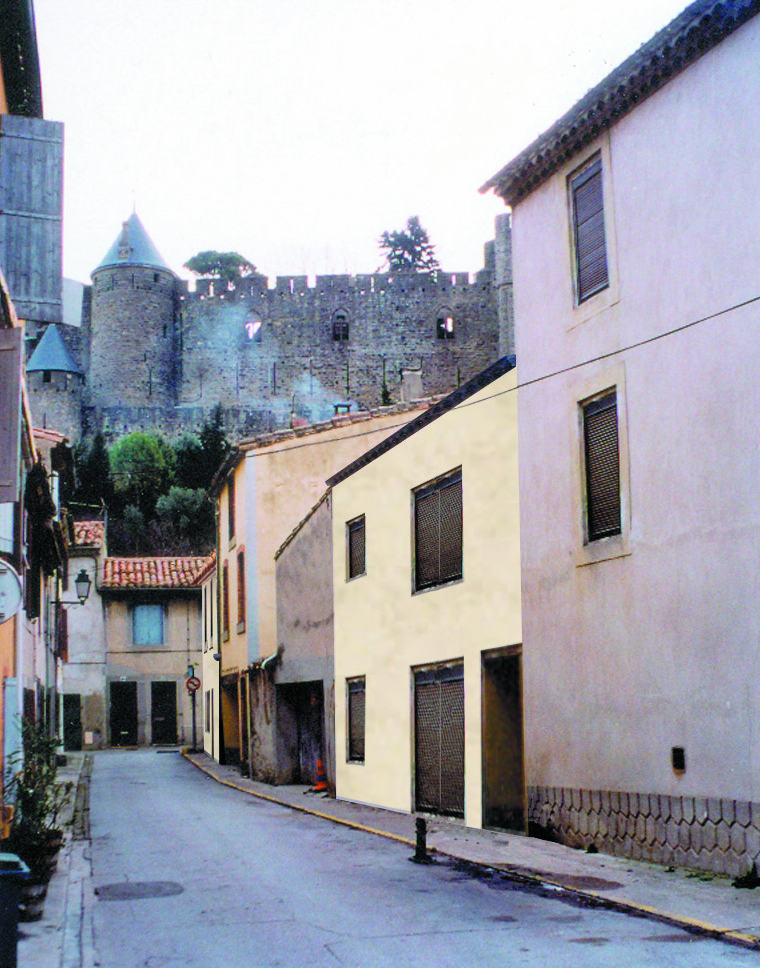 Masterplan and architectural design for regeneration of a derelict farmyard and buildings in the ancient city of Carcassonne, Southern France.