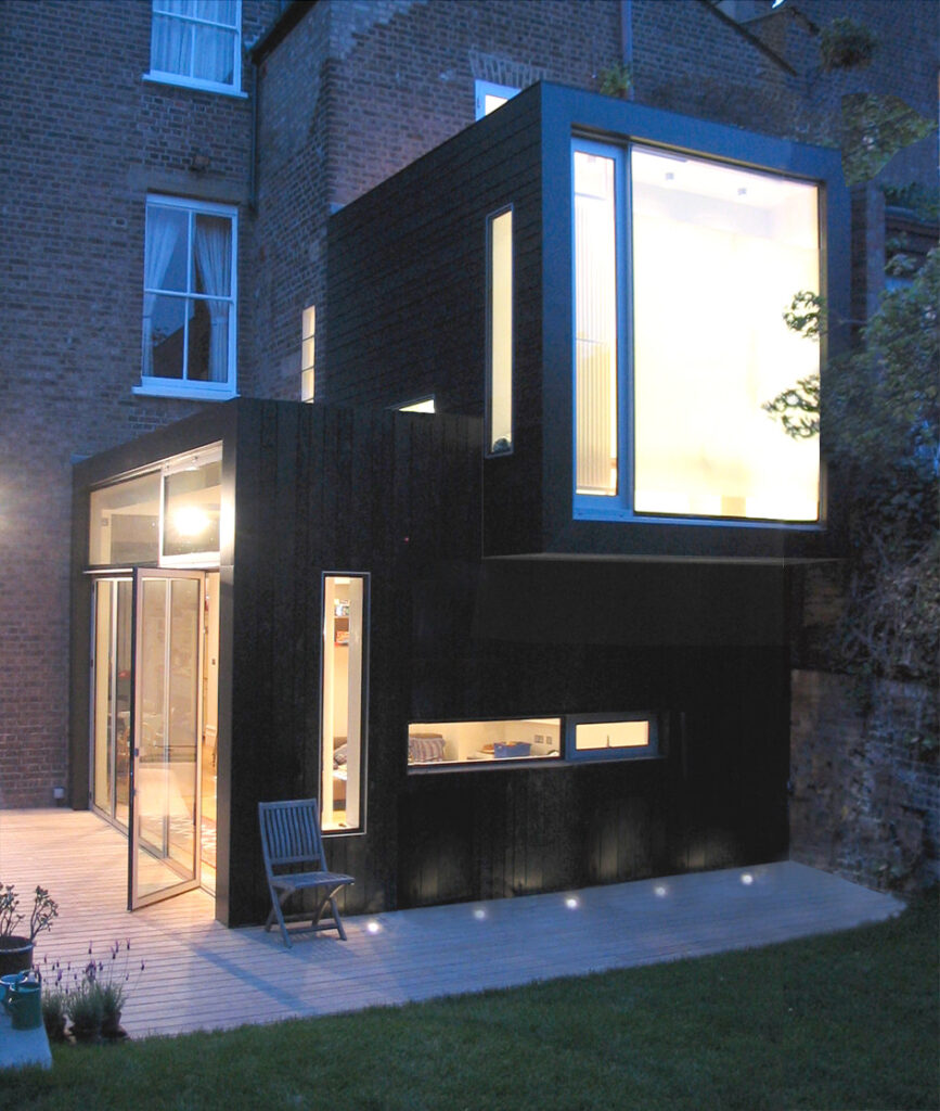 The new build elements use sustainable materials, with softwood framing and (black stained) cladding. The client retained RDA to select furniture, and to complete the landscape redesign.